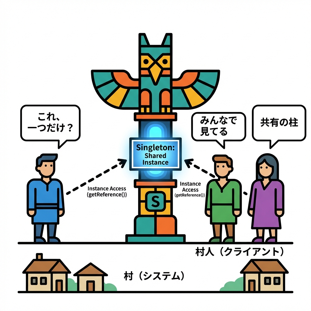 - Singleton = アプリ全体で同一インスタンスを共有👑