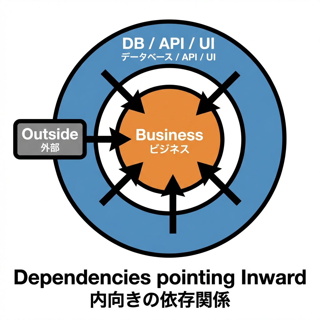 • 中心(守りたい):業務ルール・ユースケース・ドメイン知識🏰❤️