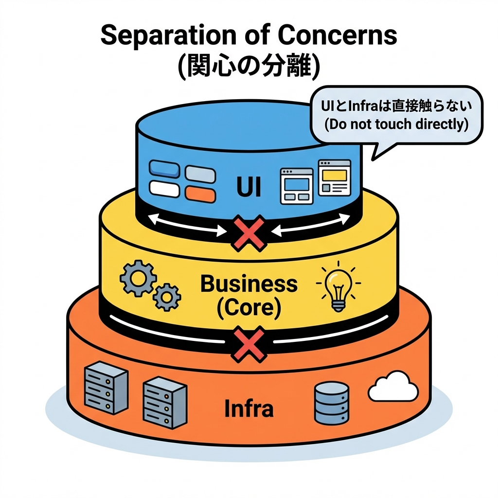- SoC:仕事の種類ごとに分ける(混ぜない)🧩