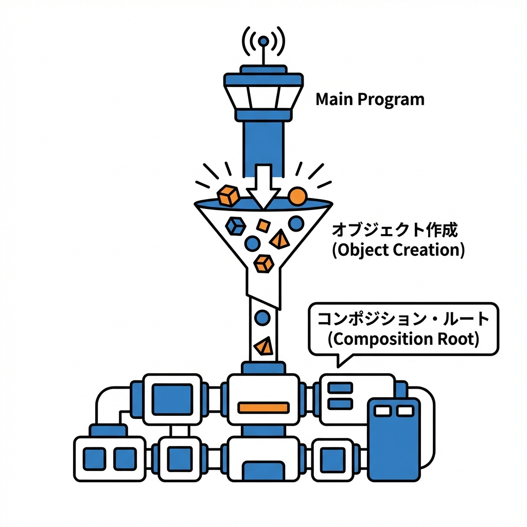 newが散らばらない「組み立て地点(Composition Root)」を体感する📍✨- 上位(業務:登録ルール)が、下位(DB:SQLiteとか)に引きずられないのを体験する🛡️❤️