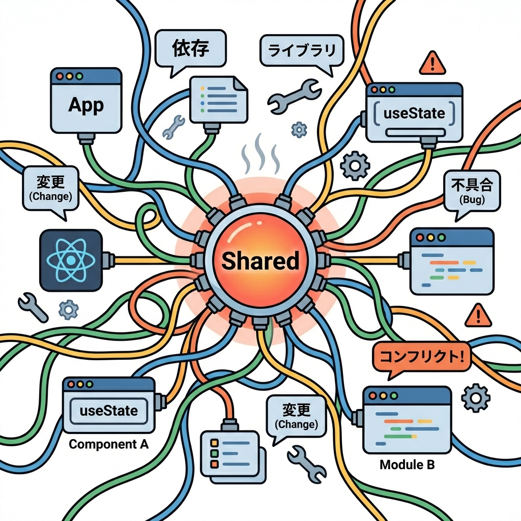 - Sharedをちょい変更 → 全部に影響 → 変更が怖い → 触れない “神棚” 化🛐