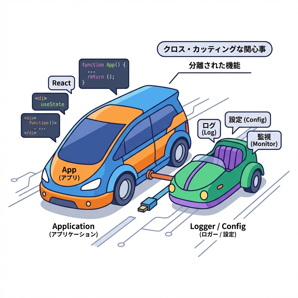 横断関心 = どの機能にも「横から」関わってくるもの🧵✨ たとえば…