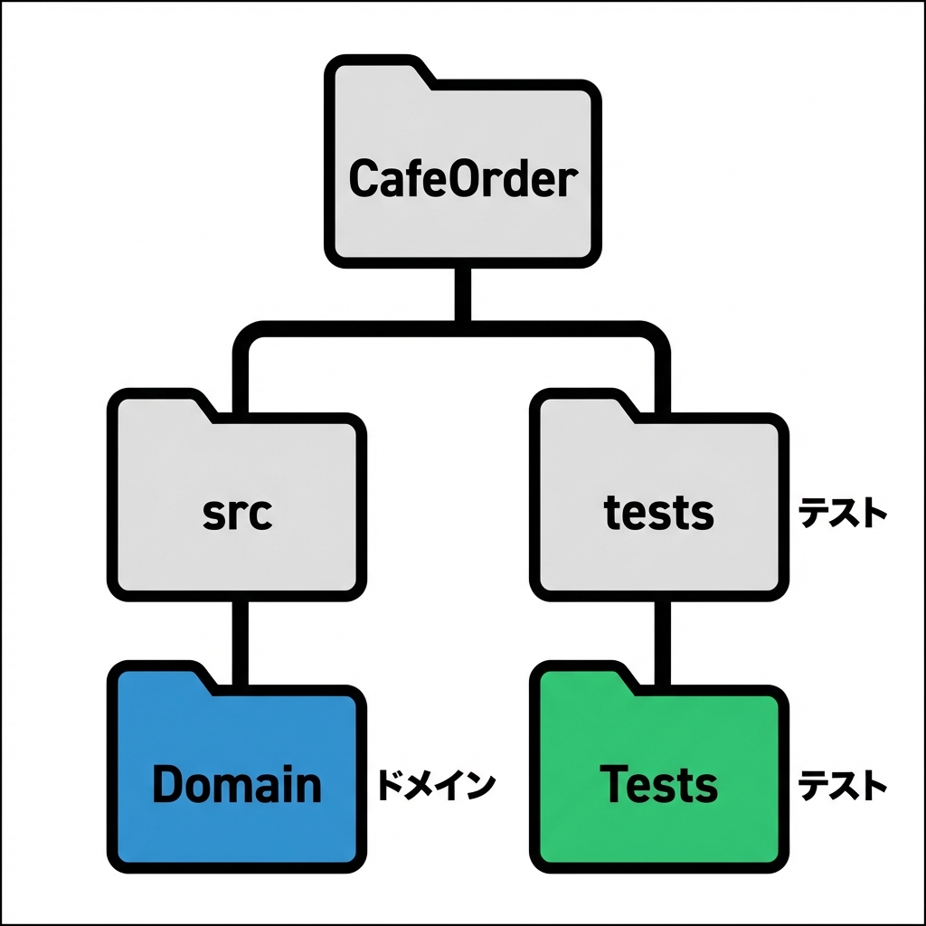 学習用の「学内カフェ注文アプリ」☕️🧾で、**ドメイン用プロジェクト(Domain)テスト用プロジェクト(Tests)**を分けたソリューションを作って、迷わず実行&テストできる状態にするよ〜!💪😊