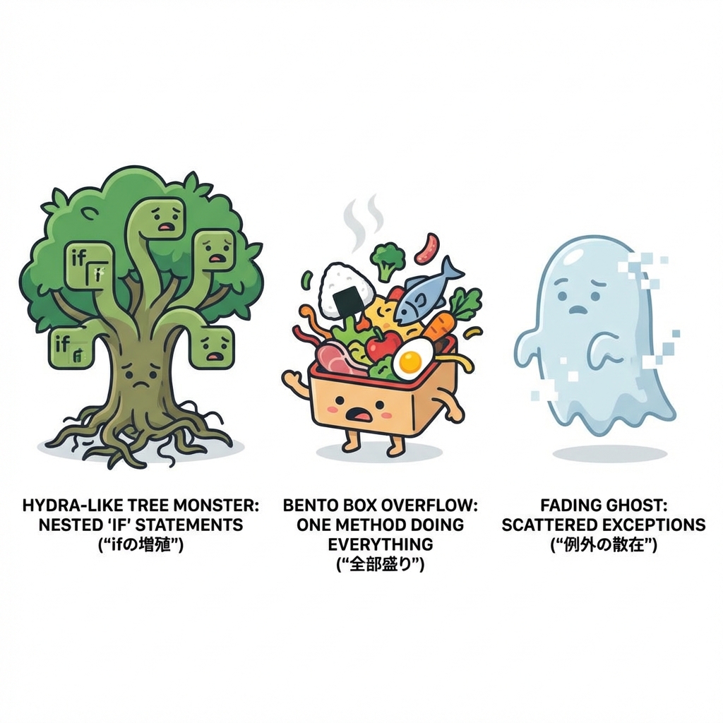 分類は「分岐の複雑さ」「責務の混在」「例外/境界の散らばり」。